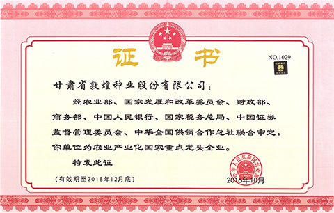 甘肅省敦煌種業(yè)集團股份有限公司是主要從事種子、棉花、食品加工業(yè)務(wù)的大型農(nóng)業(yè)綜合上市公司。公司現(xiàn)有注冊資本5.28億元,分、子公司19家,員工600余人。公司為農(nóng)業(yè)產(chǎn)業(yè)化國家重點龍頭企業(yè)、全國守合同重信用企業(yè)、農(nóng)業(yè)部首批育繁推一體化種子經(jīng)營企業(yè)、中國種業(yè)信用骨干企業(yè)、甘肅省戰(zhàn)略新興產(chǎn)業(yè)骨干企業(yè)和高新技術(shù)企業(yè)。公司“敦煌飛天”商標(biāo)為中國馳名商標(biāo)、甘肅省著名商標(biāo)。